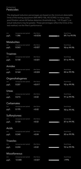 Below are the exact contaminants we remove — and by how much. Real numbers. Real science. Zero guesswork.